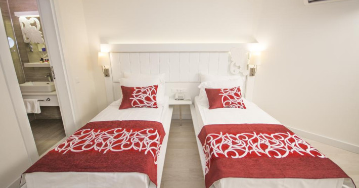 Oaspeții au la dispoziție serviciul de room service pentru a servi masa sau diverse băuturi. În camere există baie cu cadă sau duș prevăzută cu foehn. Camerele de la Laguna Beach Alya sunt dotate cu aer condiționat, Tv cu canale prin satelit și seif. Oaspeții au acces gratuit la serviciul Wi-fi în camere. Curățenia in cameră se face zilnic. Proprietatea oferă camere pentru familie cu o suprafață mai mare și un număr mai mare de paturi față de cele standard. Se pot rezerva de asemenea camere pentru nefumători.
