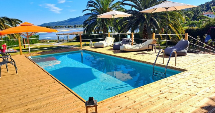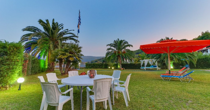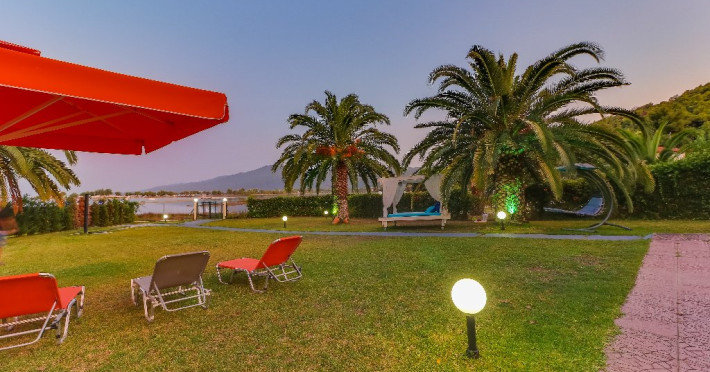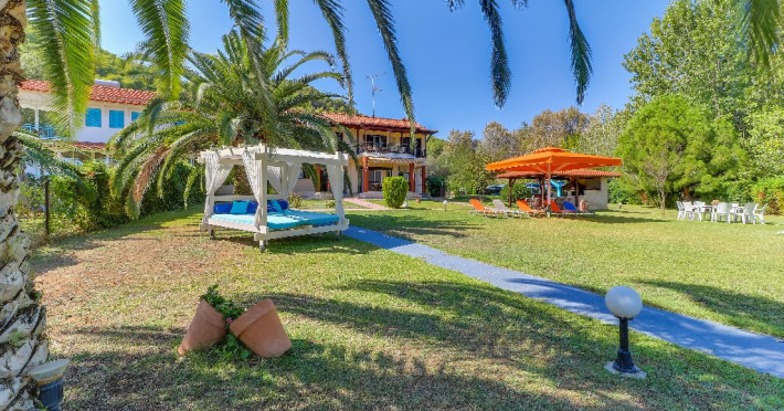 Facilitati camere: Vila Laguna este inconjurata de o gradina de 3000 m2 si beneficiaza de sezlonguri cu mese si umbrele, AC, TV, WiFi.