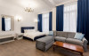 Deluxe King Studio 9 are suprafata de 42 mp, este dotata cu un King-size bed, 2 noptiere, birou, dulap, cuier cu porta valigia, canapea extensibila (se poate transforma in pat de 180/200) si masuta pentru cafea, precum si televizor Smart LED cu diagonala de 108 cm. Camera poate gazdui 4 adulti.