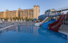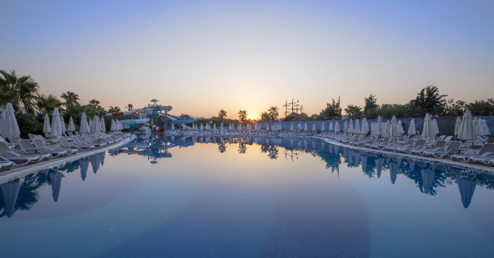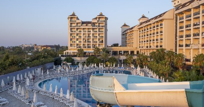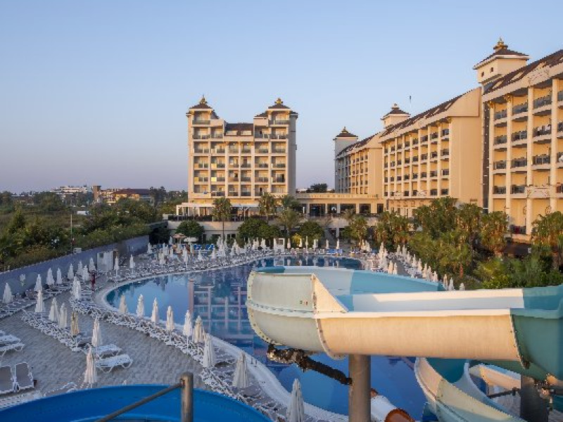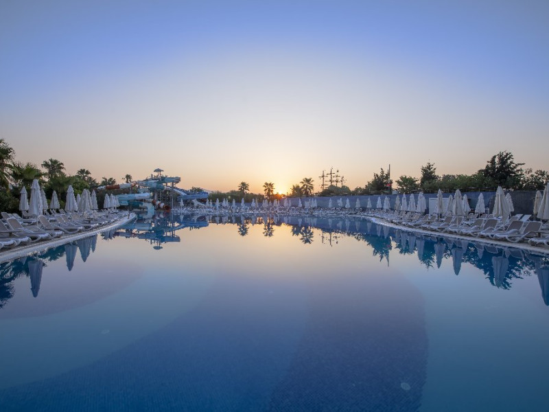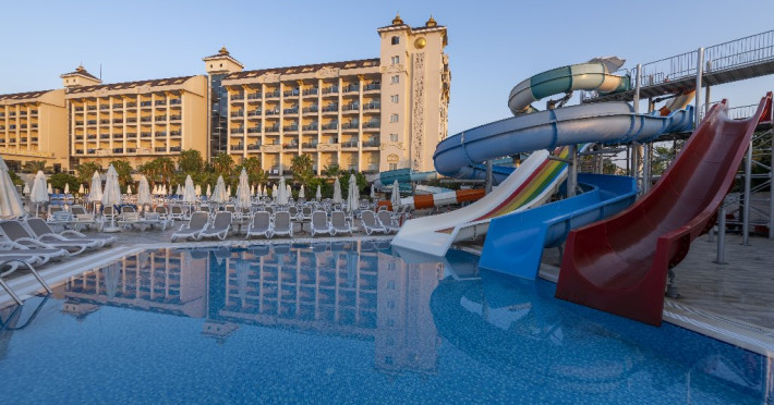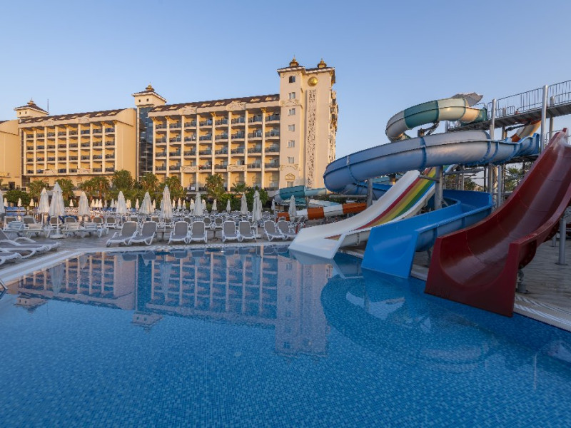 Facilitati hotel: Hotelul ofera oaspetilor sai multiple facilitati: restaurant principal, 3 restaurante a la carte (italian, turcesc, mexican - cu rezervare), mai multe baruri, patisserie, aqua park cu 2 tobogane pentru adulti si unul pentru copii, piscina exterioara pentru adulti, piscina pentru copii, gimnastica, fitness, tenis de masa, darts, boccia, volei pe plaja, miniclub, loc de joaca, piscina interioara, centru spa, tenis de masa, muzica live, discoteca, sala de conferinte, piscina pentru copii, tobogan, mini club, loc de joaca, babystitter, carucior pentru copii.