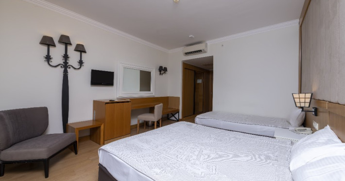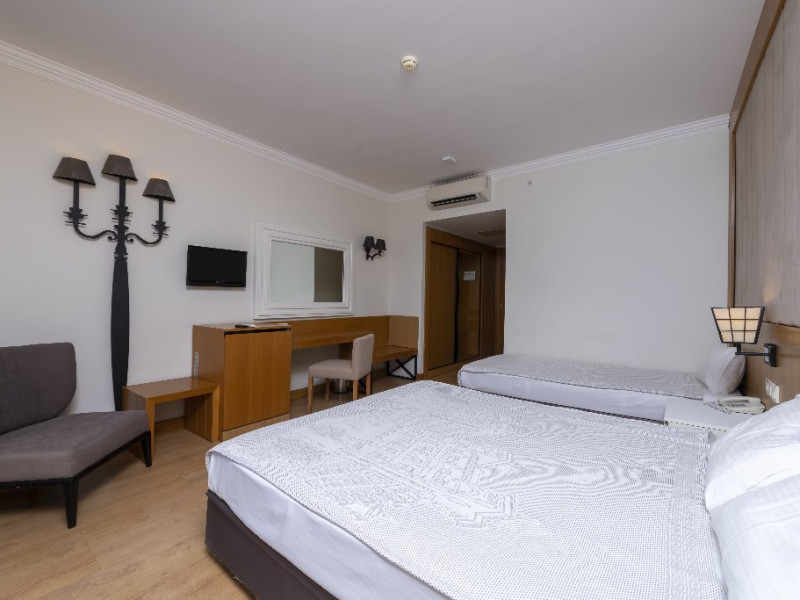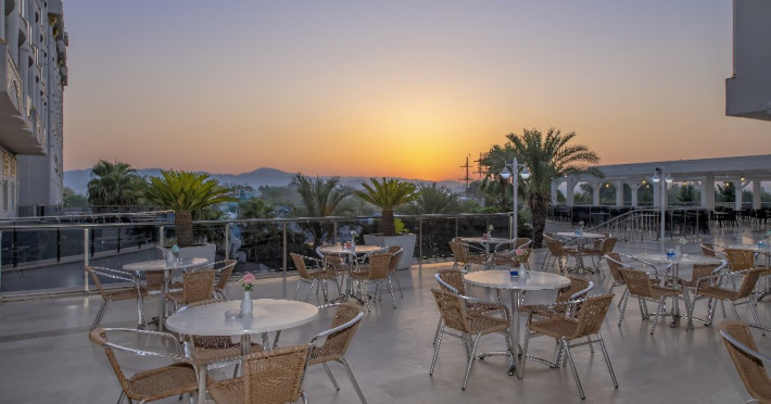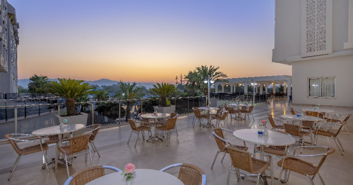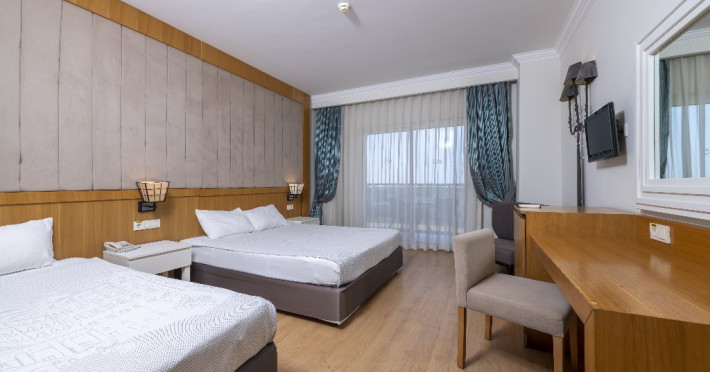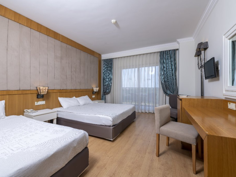 Descriere: Hotelul situat foarte aproape de centrul orasului Side, a fost construit in 2012, pe o suprafata de 25.000 mp, este format din 2 corpuri cu cate 6 etaje si dispune de 418 camere. Hotelul se renoveaza inainte de sezonul de vara 2024.Localizare: Situat la 700 m de plaja privata si la 75 km de aeroportul din Antalya. Orasul Side se afla la 7 km.