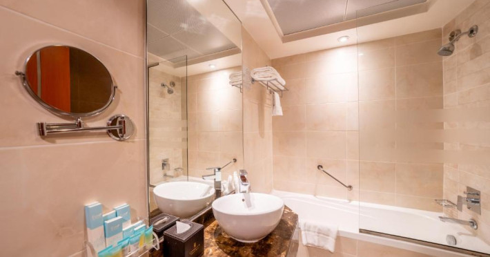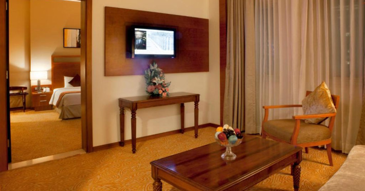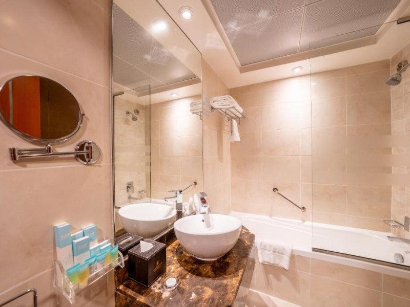 Toate camerele hotelului Landmark Grand sunt dotate cu aer condiționat și TV LCD cu canale prin satelit. Au persoane de ceai cafea și o baie proprie/ modernă cu o cadă. Suita include o cameră de zi.