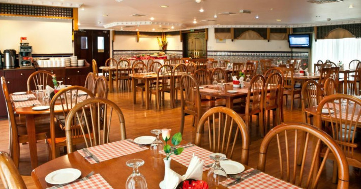 Dimineața, hotelul Plaza servește un mic dejun tip bufet. Restaurantul Shamiana oferă preparate din bucătăria internațională. Cafeneaua Al Sadeeq are program nonstop și servește o varietate de gustări și băuturi răcoritoare. Holul hotelului, in formă de atrium, găzduiește propriul centru comercial, cu 50 de magazine diverse.