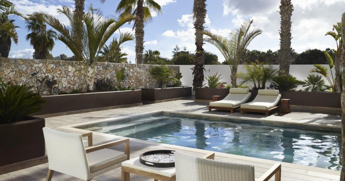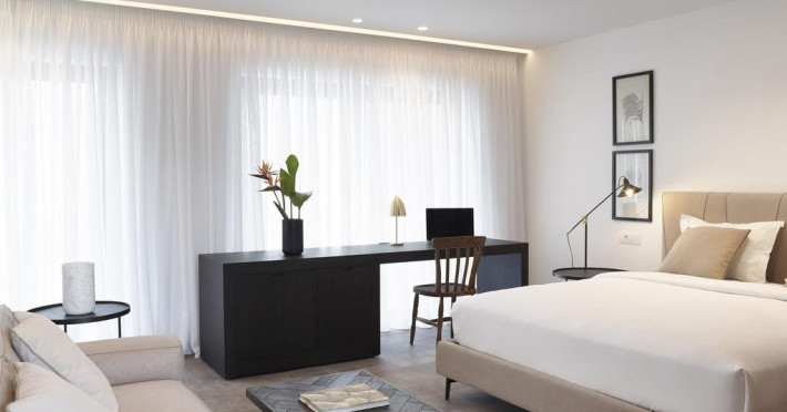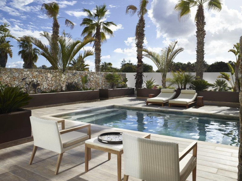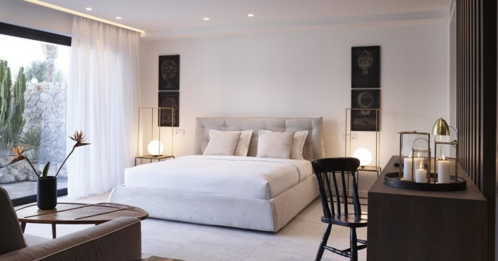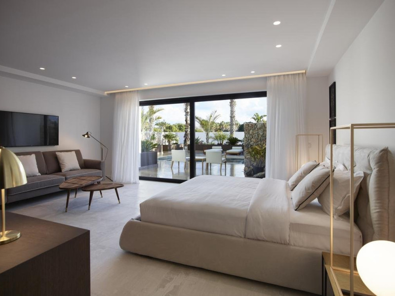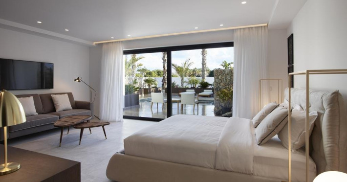 Cele 55 de camere si apartamente de lux, dintre care unele au piscina privata, ofera tot confortul si relaxarea de care este nevoie in timpul vacanCaei. Camerele au o suprafata de 25-50 mp, vedere spre piscina sau partiala la mare, la gradina sau la mare, balcon sau terasa, sofa, baie spatioasa, dus, aer conditionat, satelit si cablu TV, uscator de par, halate de baie, paturi Queen Size sau twins, mini bar, Wi-fi, cosmetice de calitate, seif, etc.