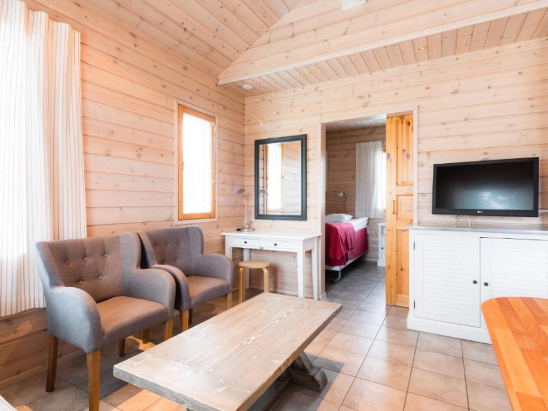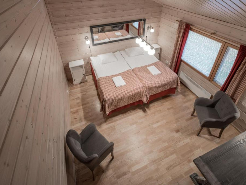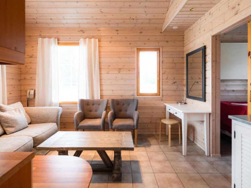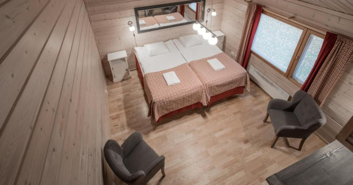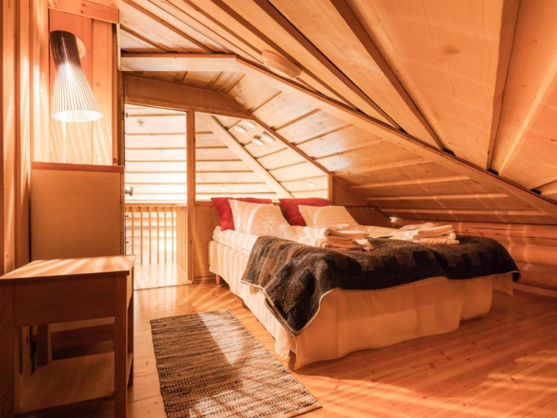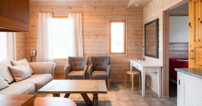 Fiecare chalet dispune de saună privată, șemineu și bucătărie complet utilată. Terasele spațioase oferă priveliști spectaculoase asupra naturii nordice, fiind locul perfect pentru a admira aurora boreală in sezonul de iarnă.