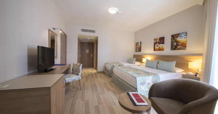Sunt disponibile 348 camere. Fiecare cameră dispune de minibar. Oaspeții pot solicita serviciul de room service pentru a servi masa sau diverse băuturi. Camerele au balcon cu masă și scaune unde pot fi petrecute momente de relaxare. Camerele luminoase de la Lara Family Club sunt dotate cu parchet, aer condiționat, Tv cu canale prin satelit și seif. În camere există baie cu cadă sau duș ce are în dotare foehn și articole de toaletă gratuite. Oaspeții au acces gratuit la serviciul Wi-fi în camere. Curățenia in cameră se face zilnic. Proprietatea oferă camere pentru familie cu o suprafață mai mare și un număr mai mare de paturi față de cele standard. Se pot rezerva de asemenea camere pentru nefumători.