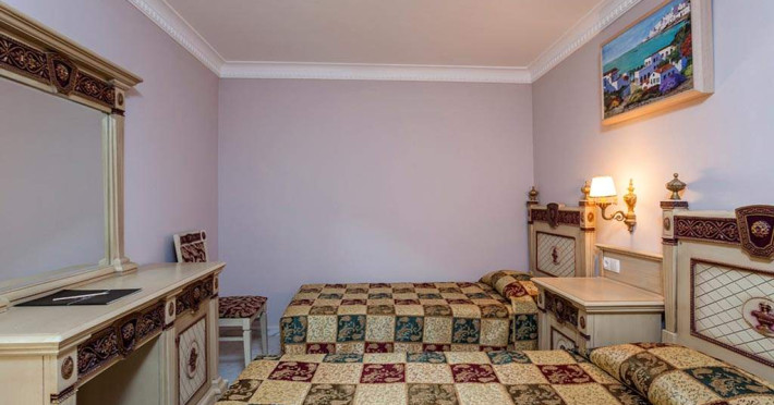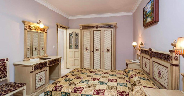 Sunt disponibile 313 camere. Oaspeții au la dispoziție serviciul de room service pentru a servi masa sau diverse băuturi. În camere există baie cu cadă sau duș ce are în dotare foehn și articole de toaletă gratuite. Camerele de la Larina Resort & Spa Hotel sunt dotate cu aer condiționat, Tv cu canale prin satelit și seif. Unele camere au balcon, cu vedere la piscină, unde oaspeții se pot relaxa în voie. Oaspeții au acces gratuit la serviciul Wi-fi în camere. Curățenia in cameră se face zilnic.