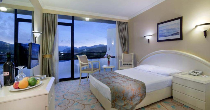 Sunt disponibile 385 camere. Camerele luminoase de la Larissa Phaselis Princess sunt dotate cu mochetă, aer condiționat, Tv cu canale prin satelit și seif. În camere există baie cu cadă sau duș prevăzută cu foehn. Unele camere au balcon cu vedere la mare sau la piscină. Oaspeții au la dispoziție serviciul de room service pentru a servi masa sau diverse băuturi. Curățenia in cameră se face zilnic.