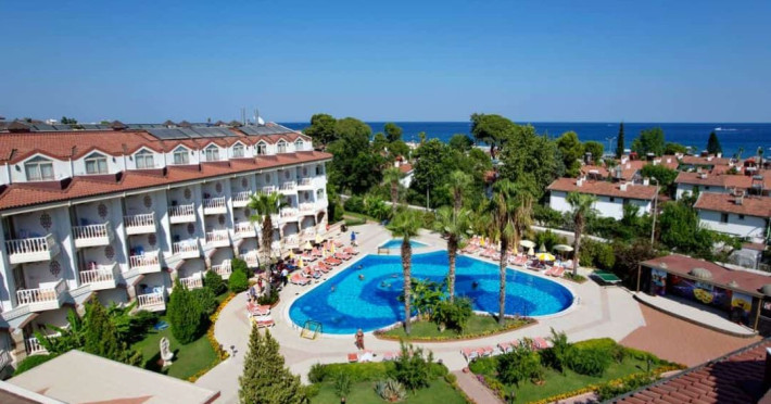 Hotelul este construit in stil otoman si se mandreste cu un hol la intrare reprezentativ de mare, cu o cupola si doua aripi laterale. Distribuite pe trei etaje si conectate printr-un lift, se afla camerele si restaurantul principal. La parter veti gasi coafor, un centru de sanatate deosebit de atractiv, care include un hamam (baie turceasca), piscina interioara, sauna, masaj, jacuzzi, centru de infrumusetare si o camera de relaxare in stil oriental, sala de ședinte, biliard si discoteca. Barul de la piscina (gustari) se afla langa restaurantul principal. Hotelul include o piscina de dimensiuni generoase, cu o piscină separata pentru copii, divertisment-animatie va fi in program 4 seri din saptamana. Hotelurile isi rezerva propria sectiune privata a plajei, in care sunt oferite sezlonguri, saltele, umbrele de soare si prosoape de plaja pentru confortul dvs. (de asemenea, la piscina). Mai mult, veți gasi un bar pe plaja, facilitati de schimb (cabine), dusuri si toalete.