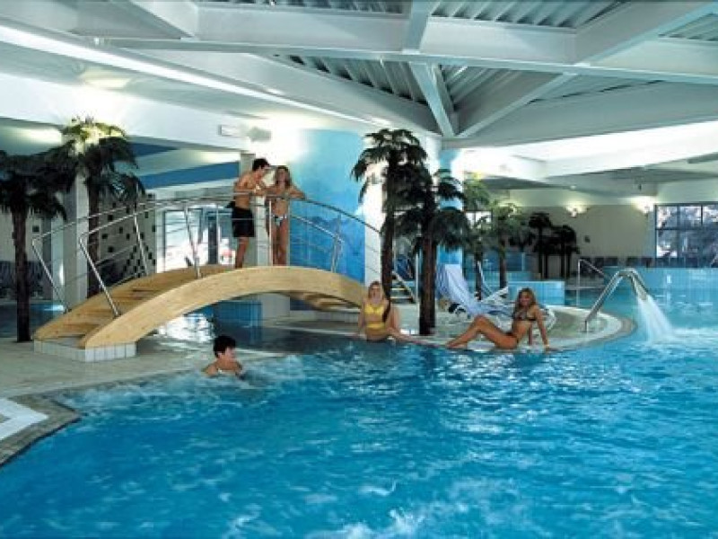 Facilitati hotel: restaurant, bar, centru wellness contra cost cu piscina 450 m2, piscina pentru copii, masaj, sauna, solar, salon de cosmetica.