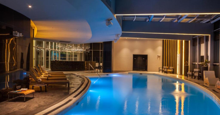 De asemenea, oaspeții au la dispoziție un centru de fitness și un restaurant. Hotelul oferă, de asemenea, săli de conferințe și magazine.