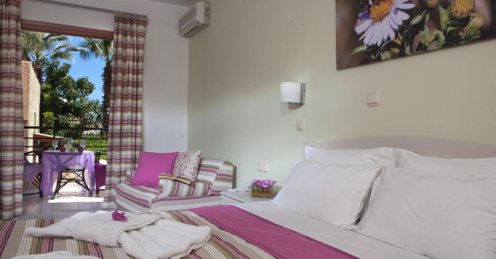 Sunt disponibile 44 camere. Unele camere au balcon cu vedere la grădină sau la piscină. Camerele confortabile de la Latania Apartments sunt dotate cu pardoseală de gresie/ marmură, aer condiționat, Tv și seif. Fiecare cameră dispune de mașină pentru preparare cafea sau ceai și fierbător În camere există baie cu cadă sau duș prevăzută cu foehn. Oaspeții au acces gratuit la serviciul Wi-fi în camere. Curățenia in cameră se face zilnic. Toate camerele spațioase de la Latania Apartments au zonă de relaxare. Fiecare unitate de cazare include o chicinetă utilată cu frigider și ustensile de bucătărie. De asemenea, sunt disponibile o zonă de luat masa și un cuptor cu microunde. Proprietatea oferă camere pentru familie cu o suprafață mai mare și un număr mai mare de paturi față de cele standard.