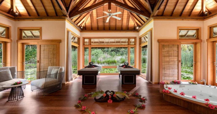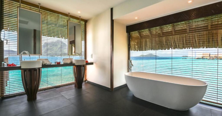 Oaspeții acestui complex de lux pot alege intre vile cu grădină cu piscină privată, apartamente pe malul mării cu piscină privată sau bungalouri deasupra apei, cu acces direct la apele turcoaz de dedesubt.