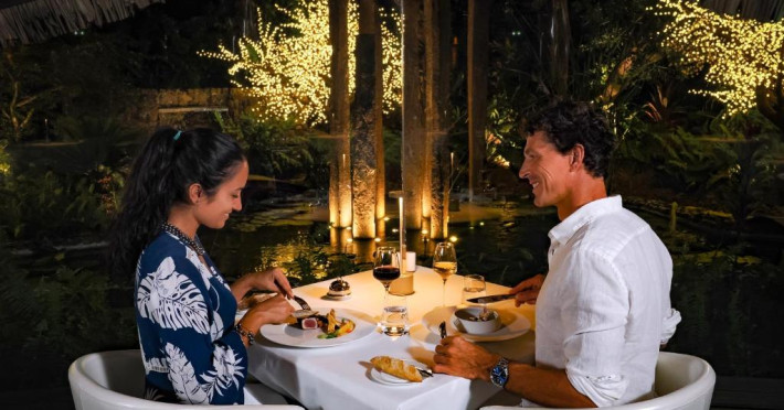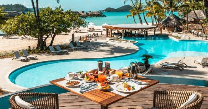 Există 3 restaurante și un bar, inclusiv Restaurantul Otemanu, care are vedere la apele turcoaz ale lagunei Bora Bora și oferă mese in aer liber pe terasă.