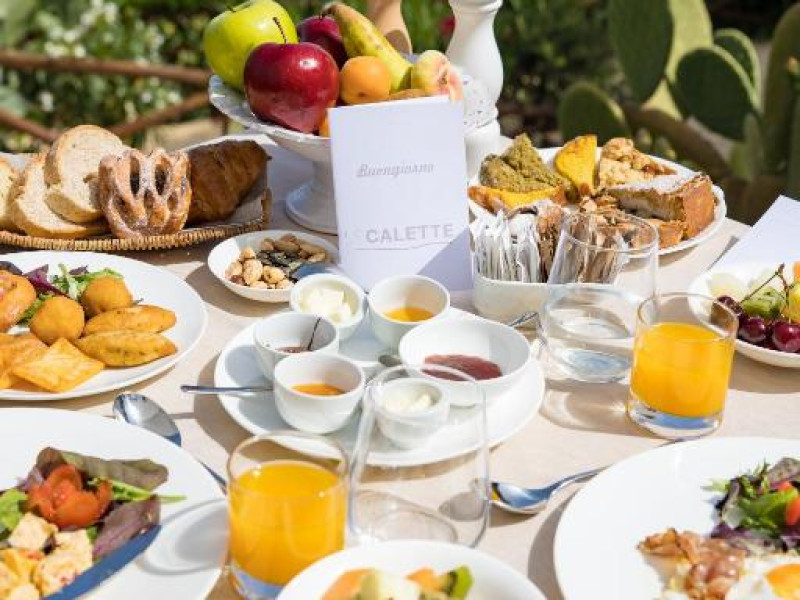 Toate camerele de la Le Calette sunt dotate cu aer condiționat și TV cu plată. Unele oferă vedere la mare sau la grădină. Baia include articole de toaletă gratuite și uscător de păr.