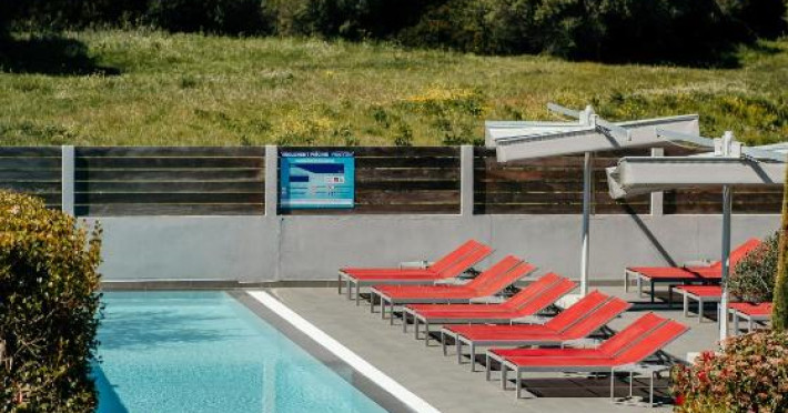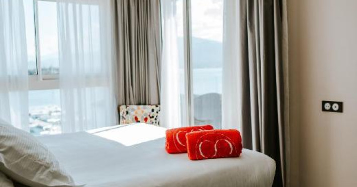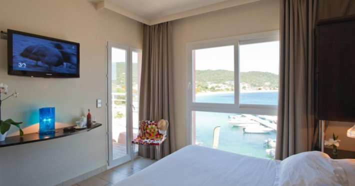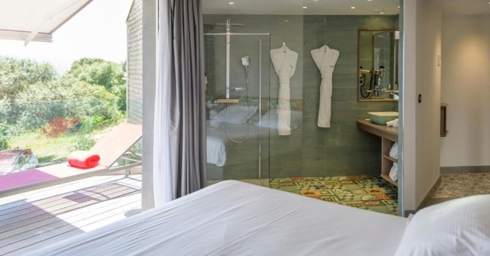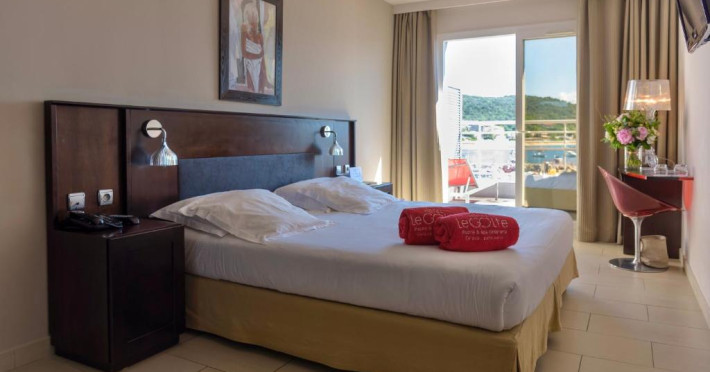 Camerele luminoase și confortabile sunt decorate in nuanțe marine și dispun de balcoane private de unde puteți admira apusul peste Marea Mediterană. Restaurantul hotelului servește specialități corsicane și preparate mediteraneene, cu accent pe fructe de mare proaspete și produse locale.