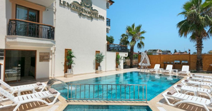 Le Marden Hotel Spa se află in Tekirova și include o piscină in aer liber sezonieră, un centru de fitness, o grădină și o terasă. Situată la 14 minute de mers pe jos de Plaja publică din Tekirova și la 25 km de Chimera, proprietatea oferă o zonă de plajă privată, precum și un bar. Proprietatea pune la dispoziție o recepție deschisă non-stop, servicii de transport de la/la aeroport, room-service și WiFi gratuit in intreaga proprietate.