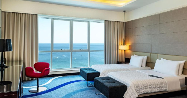 Amplasat intr-o locație excelentă, cu vedere panoramică la Oceanul Indian pe o parte și la Munții Hajar pe cealaltă, Le Meridien Al Aqah este un hotel de 5 stele care oferă facilități luxoase. Un serviciu de transfer de la/la aeroport este disponibil la cerere.