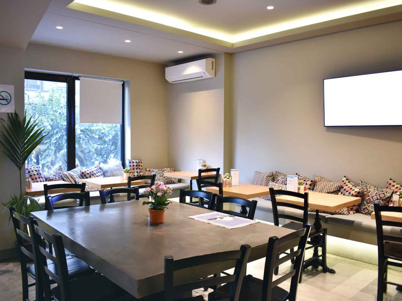 Hotel services include a 24-hour reception, room service, a restaurant serving traditional Greek cuisine, laundry and ironing services, as well as car rental. Additionally, airport transfer services are available upon request. The hotel is family-friendly, offering specially designed family rooms with extra child accommodations and baby cribs. Pets are also allowed upon request, making it an ideal choice for travelers with animal companions.