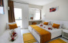 Toate camerele hotelului sunt dotate cu balcon mobilat, aer condiționat, minibar (contra cost, la cerere), TV, cadă/ duș, săpun într-un pachet individual.