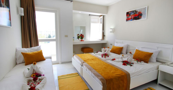 Hotelul se afla la 250 m de plaja, plaja este privata cu nisip. Umbrelele de plajă și piscină, șezlongurile sunt gratuite, prosoapele de plajă sunt contra cost, cu depozit.