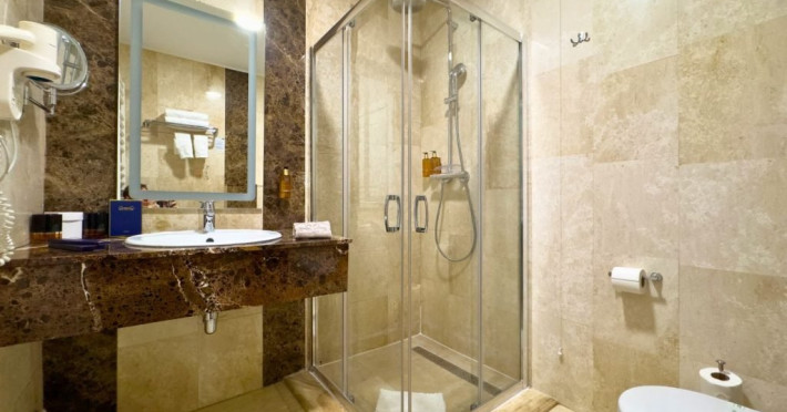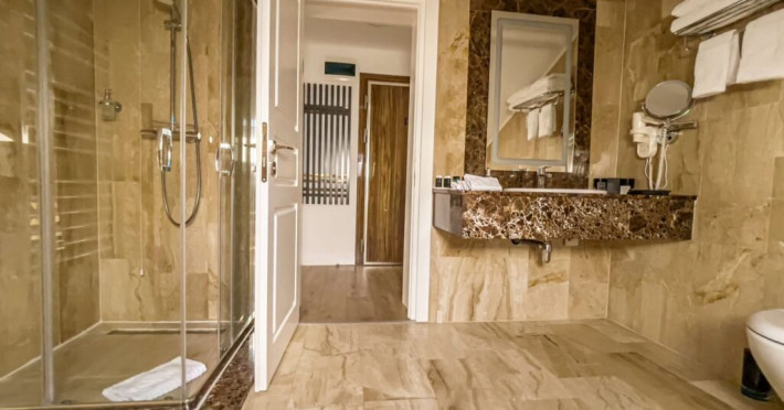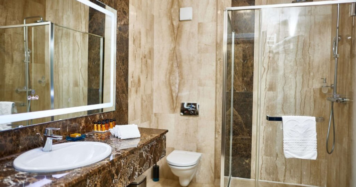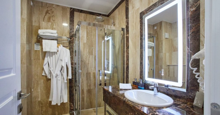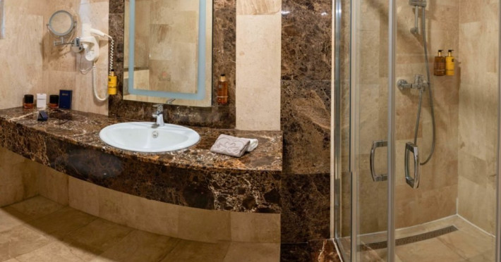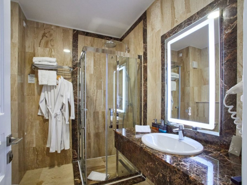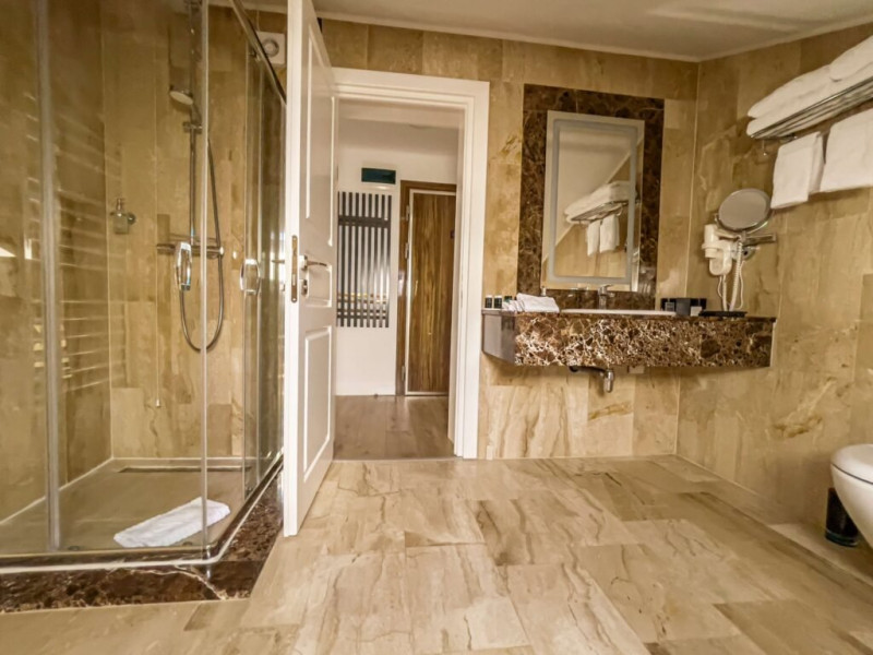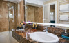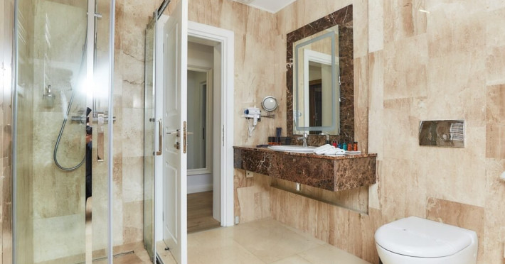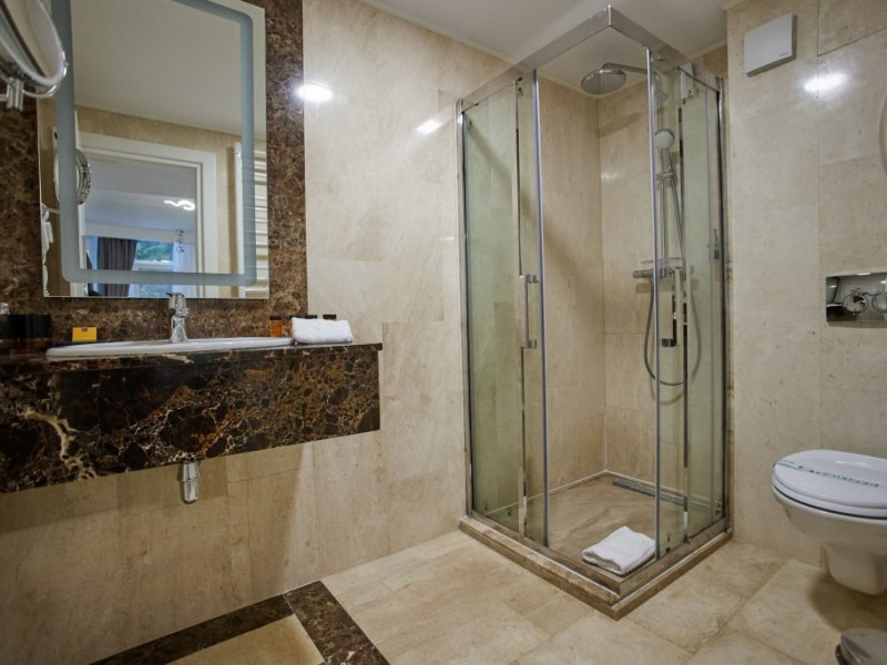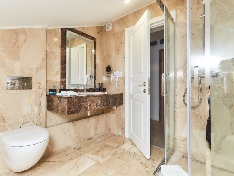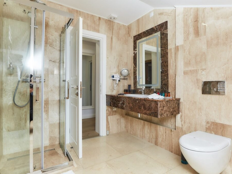 Baia este finisata cu marmura si dotata cu facilitati moderne si produse de ingrijire de calitate superioara, pentru o experienta de relaxare completa. Fie ca este situata in hotelul principal sau in corpul separat, Junior Loft Suite ofera intimitate, liniste si un ambient rafinat, fiind o alegere excelenta pentru oaspetii care cauta un sejur confortabil si elegant la Lebada Luxury Resort & SPA.