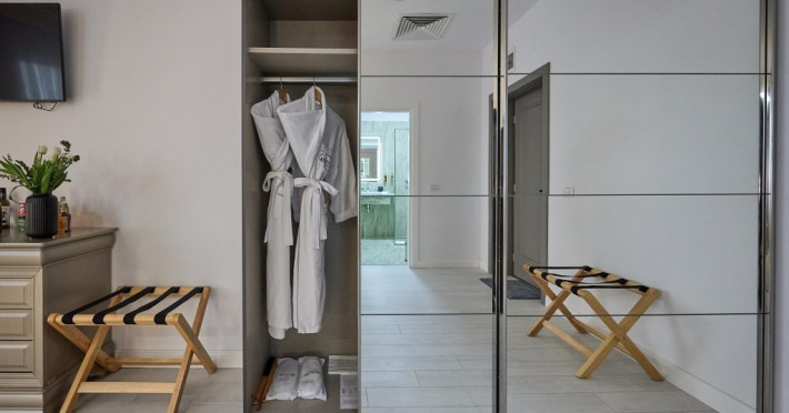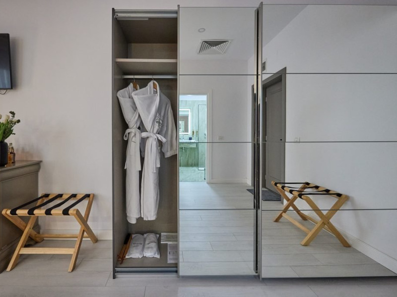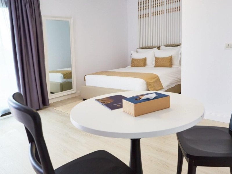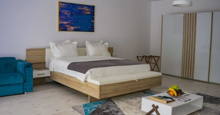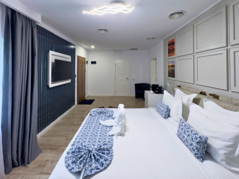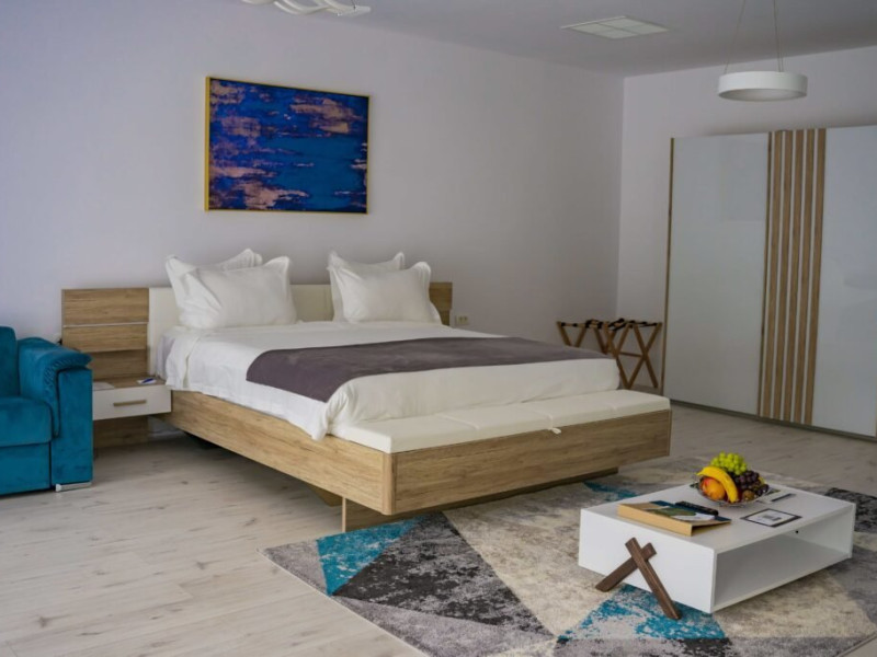 In interior, descoperiti un zona a linistii si stilului, unde eleganta moderna intalneste confortul de neegalat. Un pat king-size, conceput pentru a va oferi un somn odihnitor pe tot parcursul noptii. Pentru a va imbunatati sederea, am pregatit cu atentie o gama de facilitati, asigurandu-va ca fiecare moment este plin de rasfat. De la Wi-Fi gratuit la halate de baie si papuci pufosi, fiecare detaliu a fost luat in considerare pentru a va oferi o experienta de relaxare.