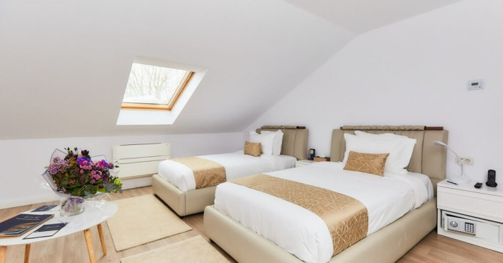 Gazduind pana la patru adulti in doua dormitoare spatioase, fiecare cu pat king-size, suita Loft de la Lebada Luxury Resort & SPA redefineste confortul. Ferestrele largi din tavan asigura o atmosfera plina de lumina si spatiu, iar amenajarea interioara moderna, impreuna cu detalii elegante si o baie cu toate facilitatile, ofera un cadru ideal pentru relaxare.