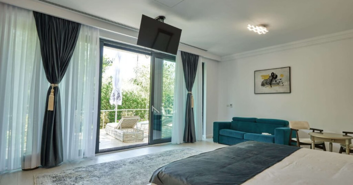 Mobilierul modern si decorul elegant completeaza ambianta, creand o atmosfera de relaxare si rafinament. Fie ca va bucurati de timp de calitate cu cei dragi sau pur si simplu cautati o retragere linistita, spatiul amplu si facilitatile asigura un sejur memorabil.