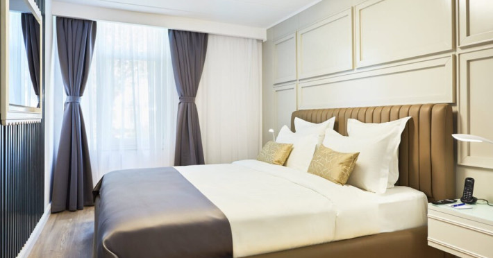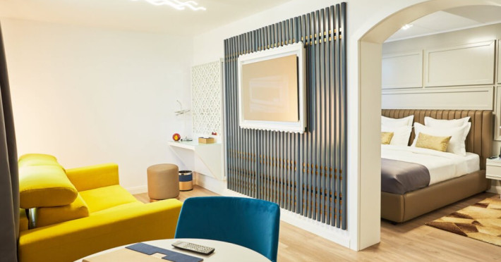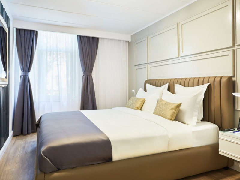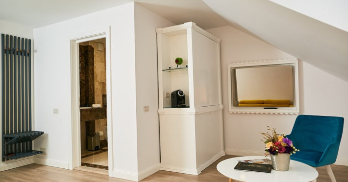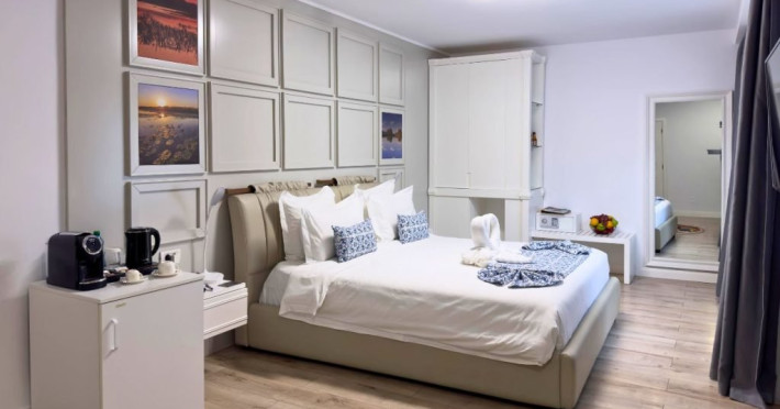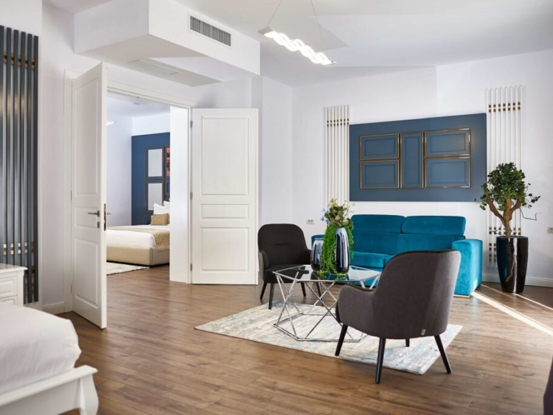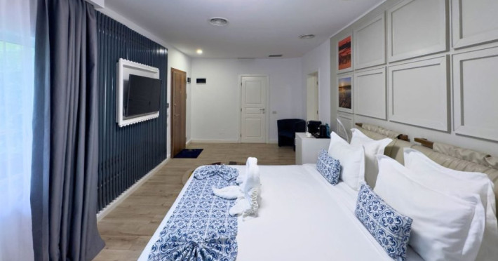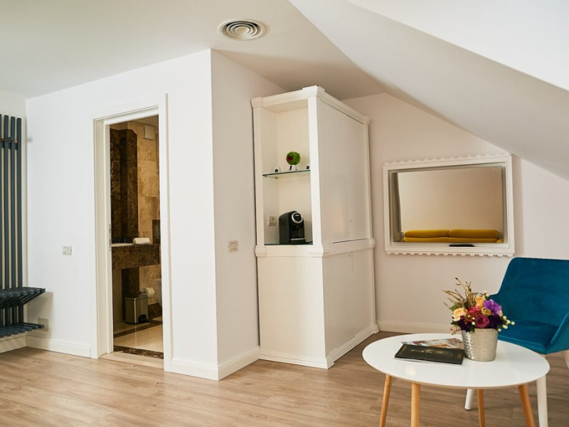 Bine ati venit la Senior Suite de la Lebada Luxury Resort & SPA, un amestec de rafinament si confort. Dispunand de un pat dublu king si o canapea extensibila de plus, acest apartament poate gazdui pana la trei adulti sau doi adulti si doi copii. Amenajarea spatioasa si decorul rafinat o fac ideala pentru familii sau grupuri mici care cauta o nota de eleganta. Suita emana o ambianta senina, cu tonuri neutre, moi si decor contemporan. Ferestrele mari inunda spatiul cu lumina naturala, evidentiind mobilierul elegant. Zona de living este perfecta pentru relaxare, fie ca vizionati un film la televizorul cu ecran plat sau va bucurati de imprejurimile linistite. Facilitatile moderne includ Wi-Fi gratuit de mare viteza, un aparat de cafea de ultima generatie si un minibar bine aprovizionat. Baia eleganta dispune de articole de toaleta marca Rituals si un dus revigorant, creand un sanctuar al relaxarii.