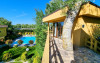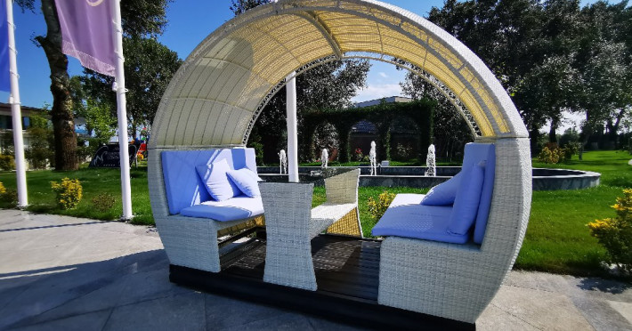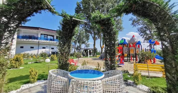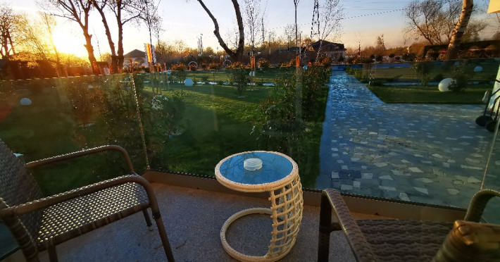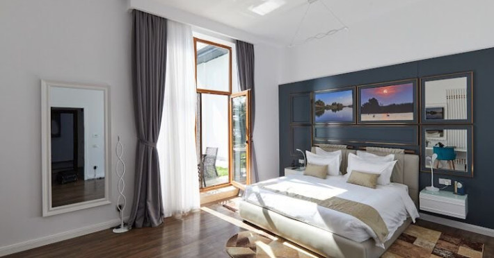 Camera dubla VIP Garden cu pat matrimonial, gradina privata. Capacitate de cazare 2 adulti si 1 copil 0-12.99 ani, se poate amplasa pat suplimentar. Suprafata 35 mp.