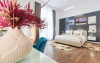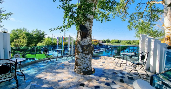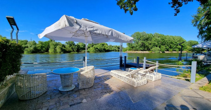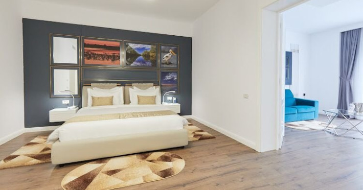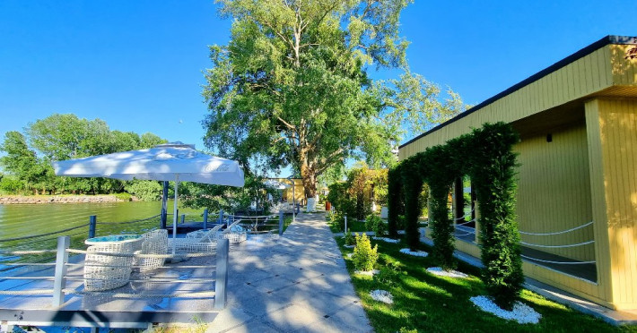 Suita VIP Garden are in dotare pat matrimonial si canapea extensibila in living, gradina privata cu vedere la Dunare. Suprafata 51.9 mp.