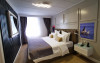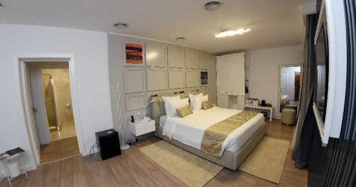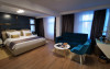 Senior suite format din dormitor cu pat matrimonial si living cu canapea extensibila, balcon, fara usa intre camere, cu vedere la gradina sau la Dunare. Suprafata: 45.3 mp.