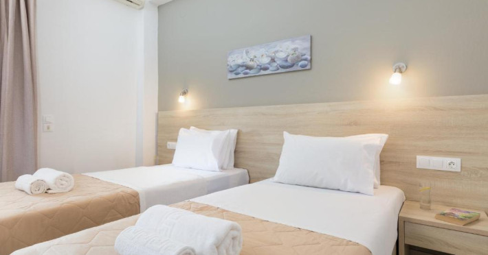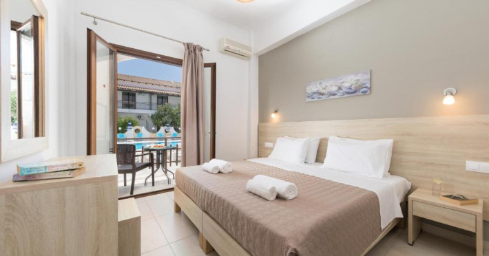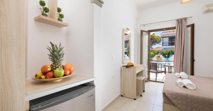 În camere există baie cu duș prevăzută cu foehn. Unele camere au balcon, cu vedere la grădină, unde oaspeții se pot relaxa în compania celor dragi. Camerele confortabile de la Lefkimi Hotel sunt dotate cu pardoseală de gresie/ marmură, aer condiționat și seif. Curățenia in cameră se face zilnic.