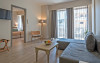 Sunt disponibile 24 camere. Unele camere au balcon, cu vedere la piscină, unde oaspeții se pot relaxa în voie. Fiecare cameră dispune de mașină pentru preparare cafea sau ceai. Camerele luminoase de la Lefkoniko Beach Icarus Suites sunt dotate cu parchet, aer condiționat, Tv și seif. În camere există baie cu duș ce are în dotare foehn și articole de toaletă gratuite. Oaspeții au acces gratuit la serviciul Wi-fi în camere. Curățenia in cameră se face zilnic.