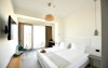 Apartamentele cu vedere frontala la mare sunt spatioase (45 mp) si au balcoane pe doua laturi, cu vedere panoramica la mare. Sunt formate dintr-un living luminos, dotat cu o canapea extensibila, dormitor spatios, separat prin usi glisante, au paturi matrimoniale king size (200x200 cm).