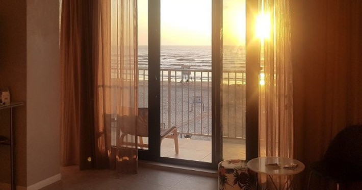Apartamentele cu vedere frontala la mare au 1 dormitor cu pat matrimonial king size (200x200 cm) si living cu canapea extensibila, cu usa intre ele, TV cu ecran plat, internet, aer conditionat, seif si minibar (contra-cost). Toate aceste suite sunt spatioase si au balcoane pe 2 laturi, atat frontal cat si lateral, cu vedere panoramica spre mare.