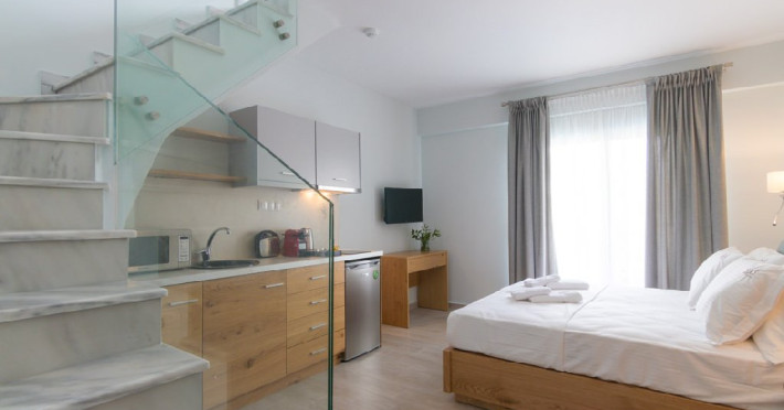 Localizare: Leon Villas (Studio & Mezonete) se afla in statiunea Nikiti, de pe ce-al de-al doilea brat al peninsulei Halkidiki si functioneza din anul 2020.Facilitati camere: Unitatea de cazare ofera studiouri si mezonete pentru 4-6 persoane.
