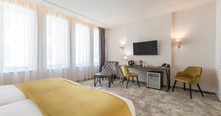 The Leonardo Boutique Hotel M-Square is situated in the heart of the city, about 150 m from the Dek Square, the Budapests main subway hub. It offers free WiFi. All stylish, air-conditioned rooms come equipped with a flat-screen TV with satellite and cable channels, coffee and tea making facilities. Some have a separate living room and a bedroom area and some rooms come with terrace. A rich buffet breakfast is available each morning at the Leonardo Boutique Hotel Budapest M-Square. * NTAK registration number: SZ20015579Datorita dinamicitatii domeniului disponibilitatea ofertelor se modifica de la un moment la altul. De aceea ofertele sunt valabile in limita locurilor disponibile. Agentia nu este responsabila pentru eventualele neconcordante care pot aparea intre informatiile privind tarifele si alte detalii din site si informatiile primite in agentie. In aceste cazuri vor avea prioritate, intotdeauna, informatiile primite in agentie.