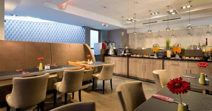Leonardo Hotel Vienna servește zilnic un mic dejun tip bufet în zona de luat masa.