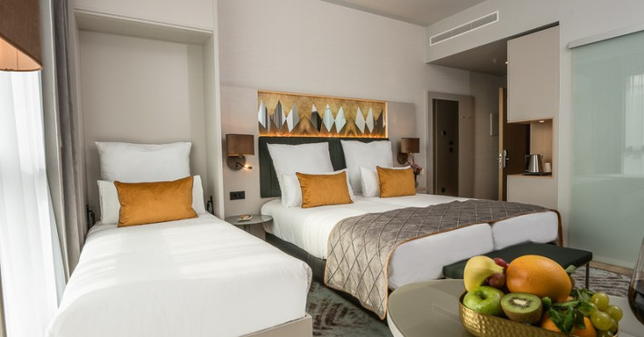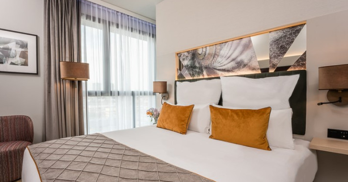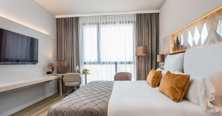 The Leonardo Royal Hotel Barcelona Fira is one of the top choices for business travelers and tourists seeking comfort and exceptional style. Located in the green district of Sants-Montjuic, the largest in Barcelona, right in front of the Fira de Barcelona and just 10 minutes from Barcelona-El Prat Josep Tarradellas Airport and Camp Nou, the hotel is the perfect place for a relaxing break, as well as an ideal venue for hosting business events. A hotel designed for travelers seeking a memorable stay in the city, surrounded by the picturesque skyline of Montjuic. The modern style of the Leonardo Royal Hotel Barcelona Fira begins in its new building. The hotel shines with its class and elegance: from the lobby to the 204 rooms and 6 conference rooms. Its distinctive character can be perceived in its luxurious interiors, designed by Andreas Neudahm, with the highest quality. It features an exclusive bar and restaurant service, and the possibility to relax in its modern and comfortable rooms or in the rooftop infinity pool, a guaranteed attraction with stunning views over the city.Datorita dinamicitatii domeniului disponibilitatea ofertelor se modifica de la un moment la altul. De aceea ofertele sunt valabile in limita locurilor disponibile. Agentia nu este responsabila pentru eventualele neconcordante care pot aparea intre informatiile privind tarifele si alte detalii din site si informatiile primite in agentie. In aceste cazuri vor avea prioritate, intotdeauna, informatiile primite in agentie.