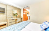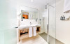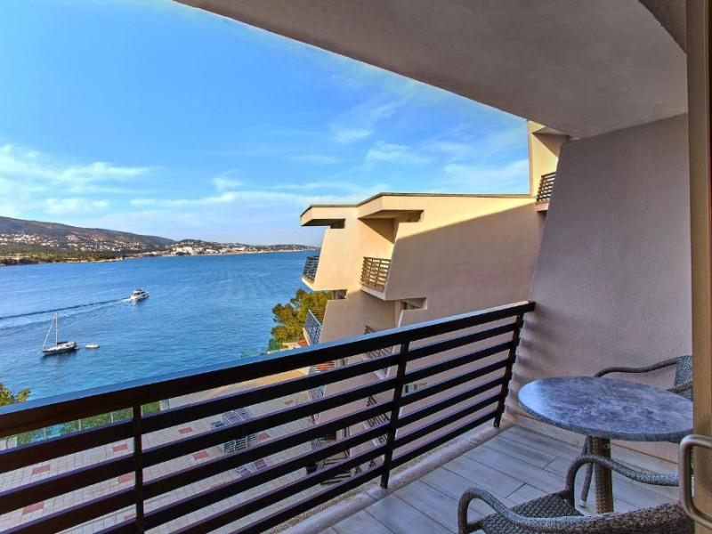 Camerele luminoase și moderne sunt dotate cu aer condiționat, TV cu ecran plat, minibar și balcon. Majoritatea oferă priveliști superbe spre mare sau spre grădinile hotelului.