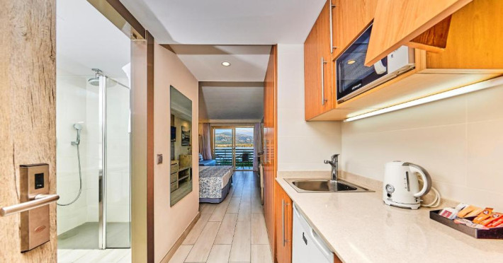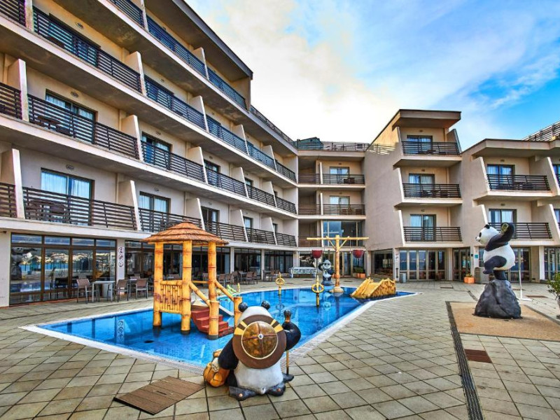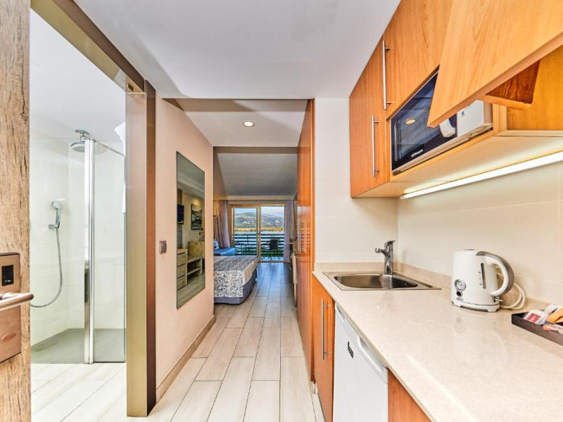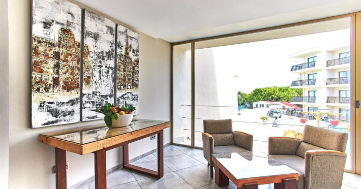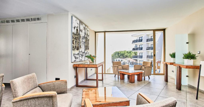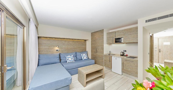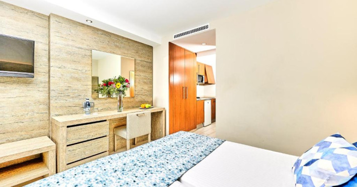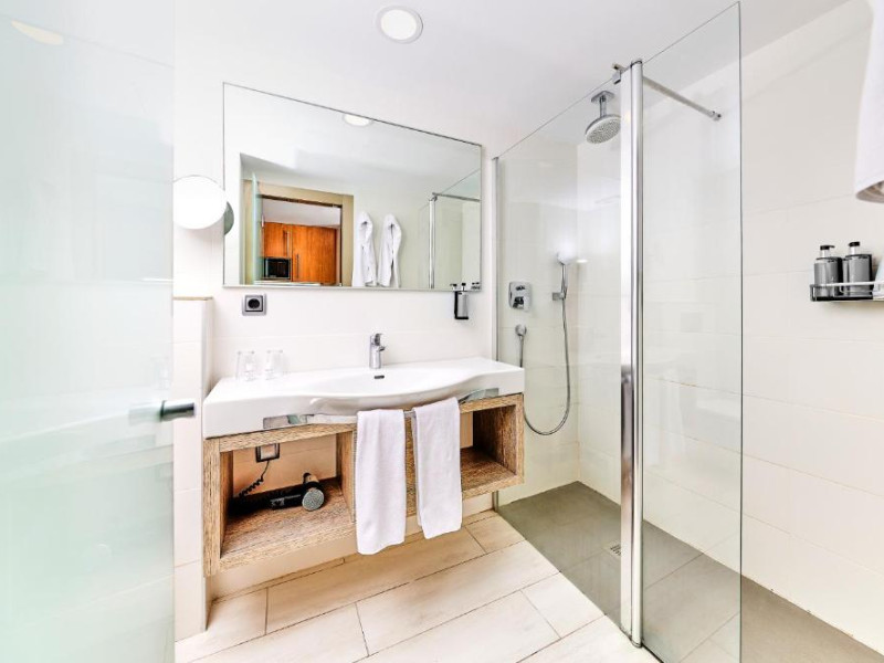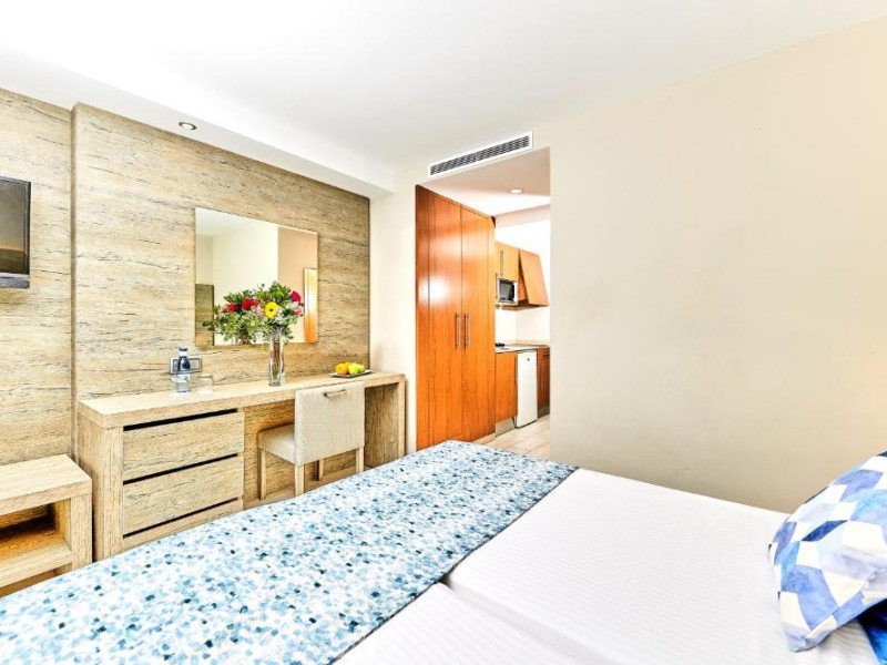 Oaspeții se pot bucura de două piscine exterioare, inconjurate de terase spațioase pentru plajă, un centru spa cu saună și sală de fitness. Restaurantul principal servește preparate mediteraneene, iar barul de la piscină oferă cocktailuri și gustări pe tot parcursul zilei.