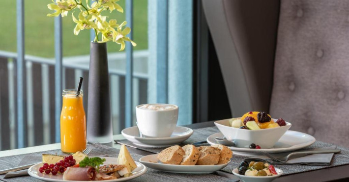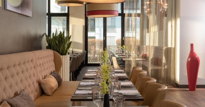 Restaurantul Vitruv servește preparate regionale și internaționale. Printre alte facilități se numără barul Leo90 și o terasă mare cu grădină.