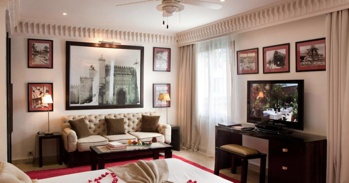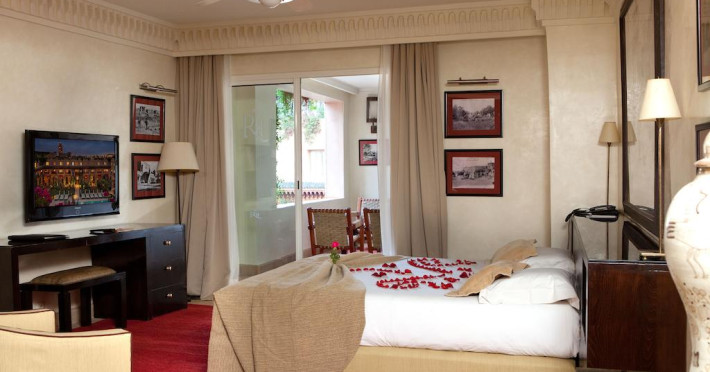 There is a 24h shuttle between the hotel and the airport 24h a day. The hotel Les Jardins De La Koutoubia has a 24h reception, a lobby, Wi-Fi, a lift, a shop, parking spaces as well as a TV lounge with satellite TV. In the outdoor area you will find a garden as well as a pool (open all year), where sun loungers and pool towels are available for free. Furthermore, you can relax outdoors on the sun terrace. Inside the hotel you can use an indoor pool. You can store your luggage in the hotel's storage room. For your comfort there is a concierge service. Due to its barrier-free facilities , such as barrier-free entrances and wheelchair accessible rooms, the hotel is also suitable for wheelchair users. Catering Your physical well-being is catered for by a restaurant with terrace and the pool bar. The drinks menu of the hotel includes water, soft drinks and wine. Sports & Leisure A sauna awaits you in the hotel`s own spa area. The hotel also offers massages.There is a 24h shuttle between the hotel and the airport 24h a day. The hotel Les Jardins De La Koutoubia has a 24h reception, a lobby, Wi-Fi, a lift, a shop, parking spaces as well as a TV lounge with satellite TV. In the outdoor area you will find a garden as well as a pool (open all year), where sun loungers and pool towels are available for free. Furthermore, you can relax outdoors on the sun terrace. Inside the hotel you can use an indoor pool. You can store your luggage in the hotel's storage room. For your comfort there is a concierge service. Due to its barrier-free facilities , such as barrier-free entrances and wheelchair accessible rooms, the hotel is also suitable for wheelchair users. Catering Your physical well-being is catered for by a restaurant with terrace and the pool bar. The drinks menu of the hotel includes water, soft drinks and wine. Sports & Leisure A sauna awaits you in the hotel`s own spa area. The hotel also offers massages.