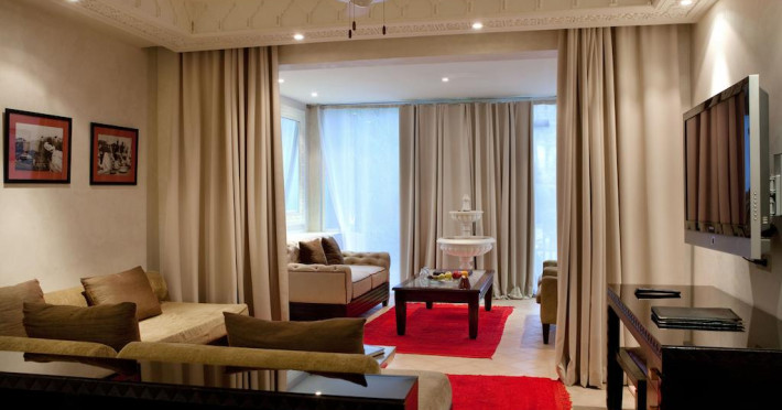 There is a 24h shuttle between the hotel and the airport 24h a day. The hotel Les Jardins De La Koutoubia has a 24h reception, a lobby, Wi-Fi, a lift, a shop, parking spaces as well as a TV lounge with satellite TV. In the outdoor area you will find a garden as well as a pool (open all year), where sun loungers and pool towels are available for free. Furthermore, you can relax outdoors on the sun terrace. Inside the hotel you can use an indoor pool. You can store your luggage in the hotel's storage room. For your comfort there is a concierge service. Due to its barrier-free facilities , such as barrier-free entrances and wheelchair accessible rooms, the hotel is also suitable for wheelchair users. Catering Your physical well-being is catered for by a restaurant with terrace and the pool bar. The drinks menu of the hotel includes water, soft drinks and wine. Sports & Leisure A sauna awaits you in the hotel`s own spa area. The hotel also offers massages.