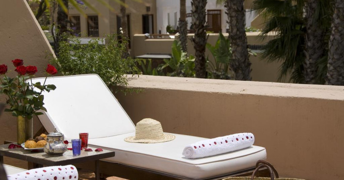 The hotel Les Jardins de la Medina is equipped with a 24h reception, Wi-Fi, a shop, a hairdresser as well as a TV lounge with satellite TV. In the outdoor area of the property you will find a garden as well as a heated pool, where sun loungers are available for free. Furthermore, outside you can find a sun terrace. You can store your valuables in the safe, and your luggage in the hotel`s storage room. For your entertainment, the hotel offers a library/reading room. To clean your clothes there is a laundry service. For your comfort there is a concierge service. Smoking is permitted in the hotel. Due to its barrier-free facilities , such as barrier-free entrances and wheelchair accessible rooms, the hotel is also suitable for wheelchair users. Catering Your physical well-being is catered for by a restaurant with terrace and the pool bar. The drinks menu of the hotel includes water, soft drinks, coffee and tea and wine. Sports & Leisure A sauna awaits you in the spa area. The hotel also offers massages.The hotel Les Jardins de la Medina is equipped with a 24h reception, Wi-Fi, a shop, a hairdresser as well as a TV lounge with satellite TV. In the outdoor area of the property you will find a garden as well as a heated pool, where sun loungers are available for free. Furthermore, outside you can find a sun terrace. You can store your valuables in the safe, and your luggage in the hotel`s storage room. For your entertainment, the hotel offers a library/reading room. To clean your clothes there is a laundry service. For your comfort there is a concierge service. Smoking is permitted in the hotel. Due to its barrier-free facilities , such as barrier-free entrances and wheelchair accessible rooms, the hotel is also suitable for wheelchair users. Catering Your physical well-being is catered for by a restaurant with terrace and the pool bar. The drinks menu of the hotel includes water, soft drinks, coffee and tea and wine. Sports & Leisure A sauna awaits you in the spa area. The hotel also offers massages.