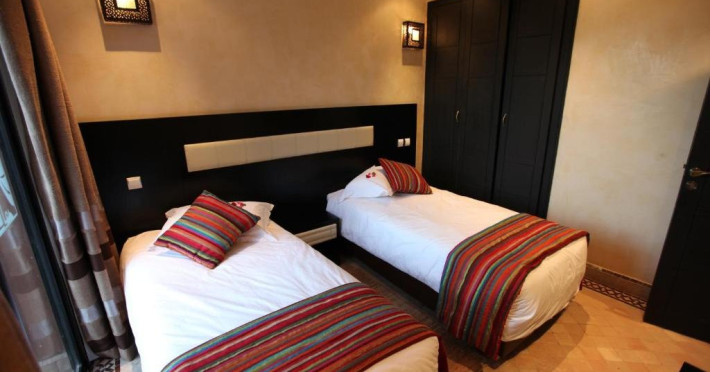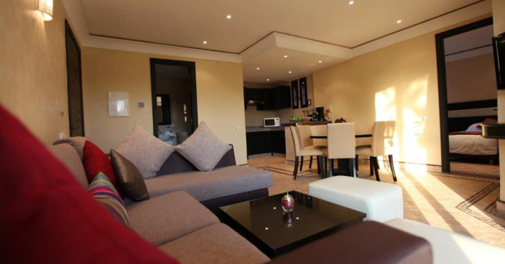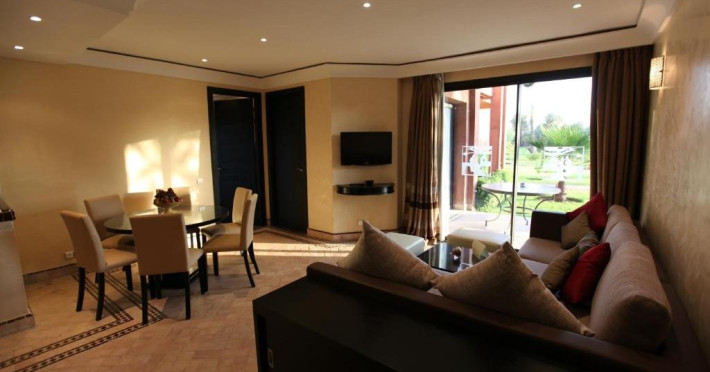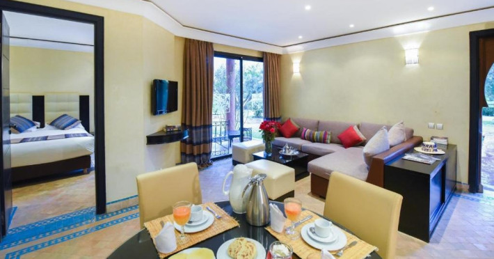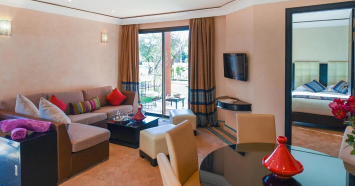 The hotel Les Jardins De Zyriab Resort & Spa has a 24h reception, a lobby, Wi-Fi as well as a TV lounge. In the outdoor area you will find a garden as well as a pool (open all year). Furthermore, outside you can find a sun terrace. You can store your valuables in the safe, and your luggage in the hotel`s storage room. For your entertainment, the hotel offers a cinema. For the young hotel guests there is a playground. To clean your clothes there is a laundry service. For your comfort there is a concierge service. For conventions and other business meetings, the hotel offers a business centre. Catering Your physical well-being is catered for by a buffet restaurant with terrace. The drinks menu of the hotel includes soft drinks, coffee and tea and wine. Sports & Leisure Special offers for all golf enthusiast provides the golf course. A minigolf course offers fun for the family. In addition, there is a riding facility in the surroundings of the hotel. The wellness area offers massages. Infants can be looked after in the hotel`s own baby club. There is a babysitting service in the hotel, so that adults can also find some time to relax. For the entertainment of adults live music is presented on certain days.The hotel Les Jardins De Zyriab Resort & Spa has a 24h reception, a lobby, Wi-Fi as well as a TV lounge. In the outdoor area you will find a garden as well as a pool (open all year). Furthermore, outside you can find a sun terrace. You can store your valuables in the safe, and your luggage in the hotel`s storage room. For your entertainment, the hotel offers a cinema. For the young hotel guests there is a playground. To clean your clothes there is a laundry service. For your comfort there is a concierge service. For conventions and other business meetings, the hotel offers a business centre. Catering Your physical well-being is catered for by a buffet restaurant with terrace. The drinks menu of the hotel includes soft drinks, coffee and tea and wine. Sports & Leisure Special offers for all golf enthusiast provides the golf course. A minigolf course offers fun for the family. In addition, there is a riding facility in the surroundings of the hotel. The wellness area offers massages. Infants can be looked after in the hotel`s own baby club. There is a babysitting service in the hotel, so that adults can also find some time to relax. For the entertainment of adults live music is presented on certain days.