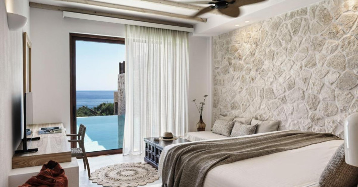 Situat în satul Akrotiri, un loc privilegiat de mare valoare culturală istorică, unde se aflau odinioară conacile nobililor insulei, cu o plajă frumoasă, retrasă în față și vederi extraordinare către orizontul albastru.Localizare