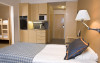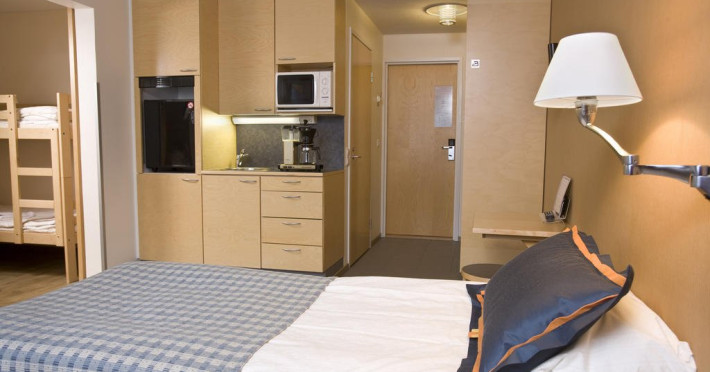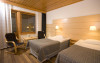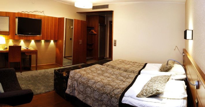 Camere: Hotelul dispune de 41 camere standard si 125 camere family. Camerele de tip standard (19 mp) sunt dotate cu TV, telefon, seif, fier de calcat, uscator de par, facilitati de preparare ceai, wifi, iar camere de tip family (21-25 mp) sunt dotate cu chicineta utilata, frigider, cuptor cu microunde, facilitati de preparare ceai, TV, telefon, seif, fier de calcat, uscator de par, wifi. Camerele de tip standard au capacitate maxima de 3 persoane, iar camerele family de 2 adulti + 2 copii. Daca sunt doar 2 persoane in camera, se va aloca o camera dubla standard.